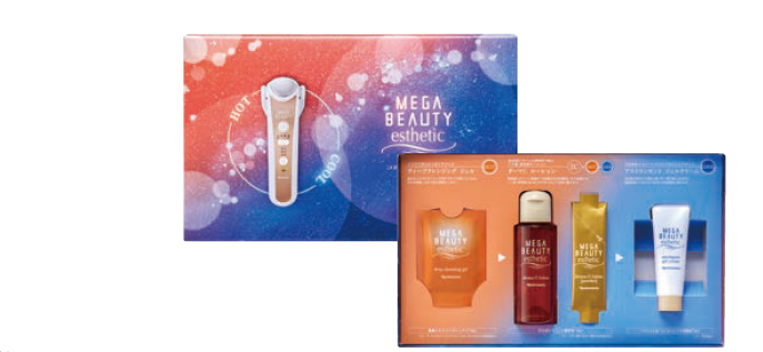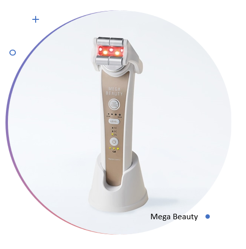 Mega Beauty是可以自己在家进行日常美容的基础产品。产品着重于放大护肤品的效果。搭载三种LED光,可深入肌肤深处的细胞中加强细胞活跃性。同时温感护理可加速渗透、冷感护理可焕亮肤色。通过温&冷交互作用,也紧致肌肤,维持肌肤年轻状态。三个模式分别是:1C(Electro Clean:吸附毛孔中的污垢)。2C(Ion Balancing +Hot &Cool 通过热护理使有效成分渗透至肌肤深处后更通过冷护理提亮细致肌肤),之后通过反复热&冷交替来起到紧致的作用。3C(Activation & LED:利用微电流,加速细胞活力)。