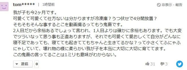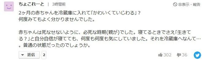 这一说法显然不能服众,谁会因为喜欢孩子而将孩子放进冰箱呢?稍有不慎,这就是妥妥的谋杀亲子啊!日本网友对此也表示愤慨: