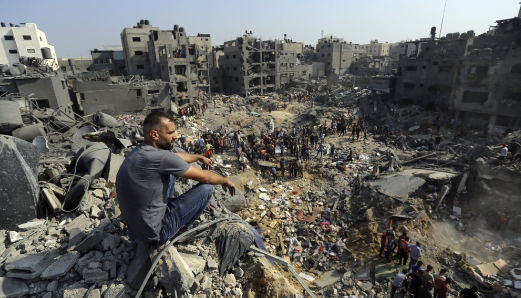 越来越猛烈的炮火轰炸过来,加沙北部现在已经成了大型的灰色废墟堆,数十座高楼被夷为平地,血淋淋的大地之下,还埋着成千上百的残破的尸体。