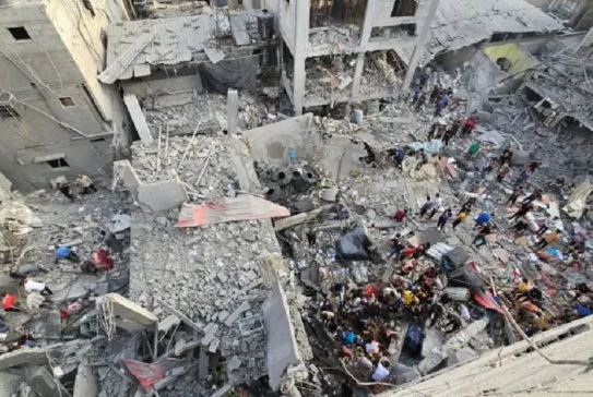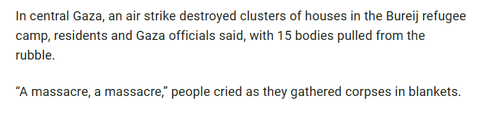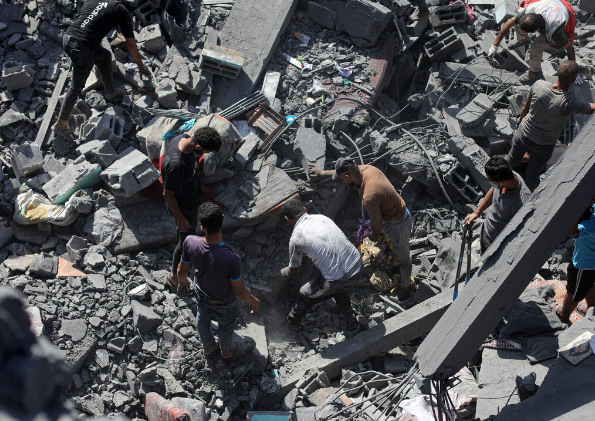 以色列新一轮空袭,摧毁了中部城市的一个难民营,人们从废墟中拖出15具尸体,还在接着挖。