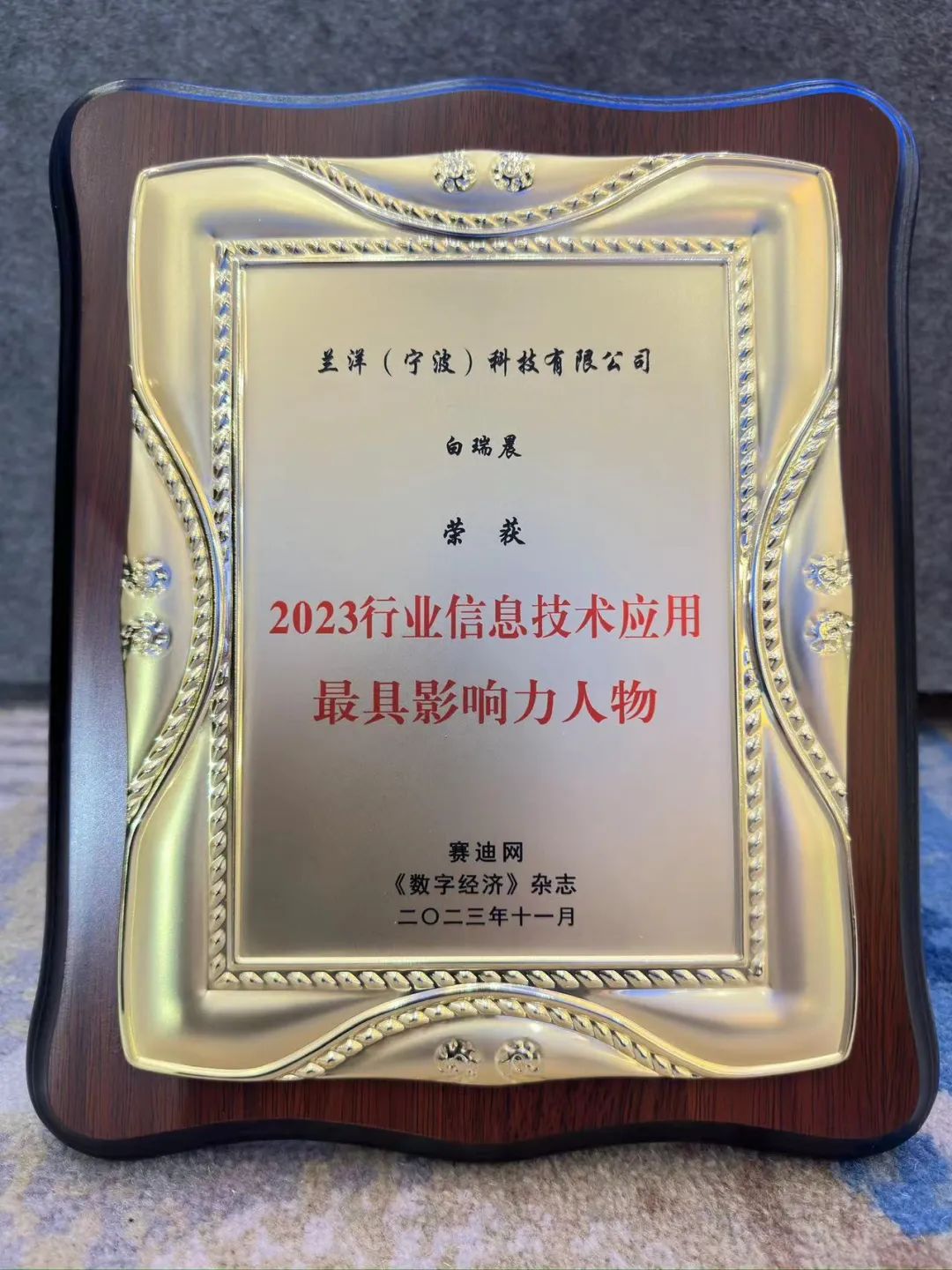 11月3日,由赛迪网、《数字经济》杂志联合主办、赛迪数通协办,以“数实融合 赋能全场景服务”为主题的“2023(第六届)行业信息技术应用创新大会”在京隆重举行,现场聚集了众多业内顶尖的技术专家和企业领袖,共同探讨行业发展趋势和挑战。兰洋(宁波)科技有限公司(以下简称“兰洋科技”)受邀参加,并获得“2023信息技术应用百佳企业”、“2023行业信息技术应用卓越解决方案”两项大奖,兰洋科技创始人白瑞晨荣获“2023行业信息技术应用最具影响力人物”称号。