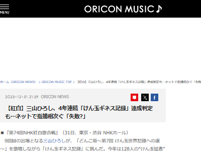 【紅白】三山ひろし、4年連続「けん玉ギネス記録」達成判定も…ネットで指摘相次ぐ「失敗?」 | ORICON NEWS