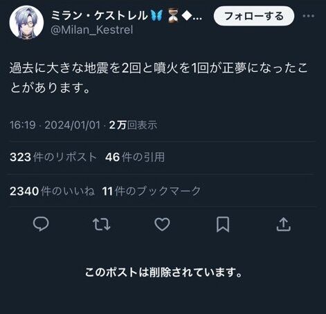— ミラン・ケストレル🦋⏳◆にじさんじ◆ (@Milan_Kestrel) January 1, 2024