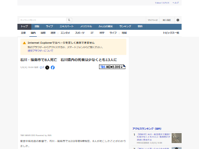 これにより、石川県内での死者は少なくとも13人に上っています。