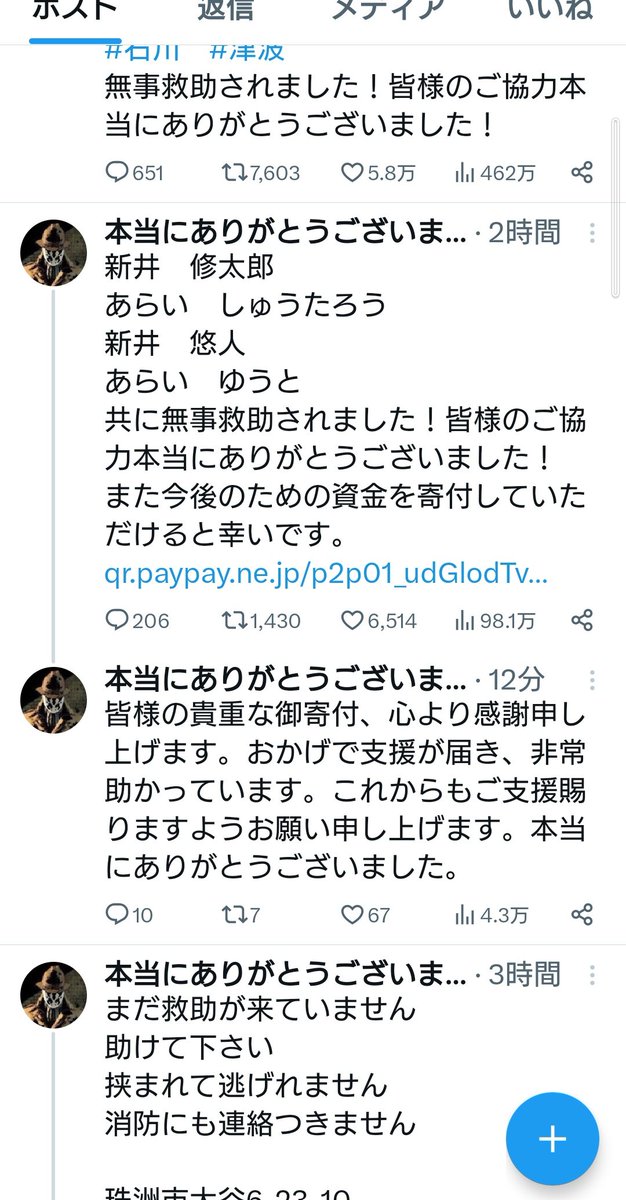 ![图片[1]-Xでクソ詐欺発生中!「地震で挟まれて動けない!住所と名前はこれ!→助かりました!よければPayPayで寄付お願いします!」-同舟](https://zb.amz114.top/wp-content/uploads/2024/01/frc-98760203b38bd1bc9da30701a38dbc80.jpg)