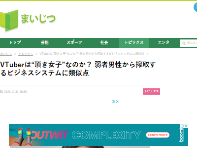 VTuberは“頂き女子”なのか? 弱者男性から搾取するビジネスシステムに類似点 – まいじつ