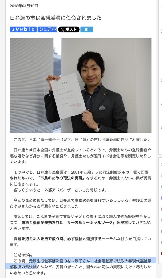 ちなみにフローレンスの駒崎氏は過去に日本弁護士連合会の委員を努めている