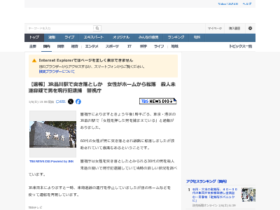 【速報】JR品川駅で突き落としか 女性がホームから転落 殺人未遂容疑で男を現行犯逮捕 警視庁