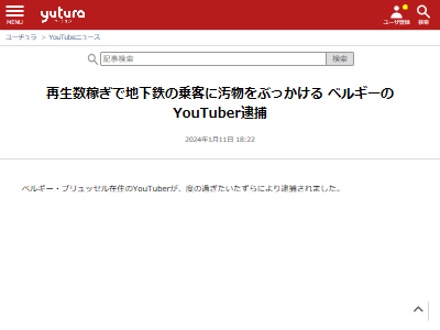 再生数稼ぎで地下鉄の乗客に汚物をぶっかける ベルギーのYouTuber逮捕