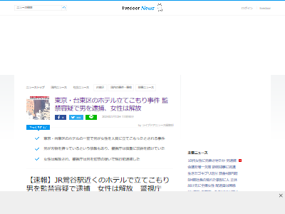 【速報】JR鶯谷駅近くのホテルで立てこもり 男を監禁容疑で逮捕 女性は解放 警視庁