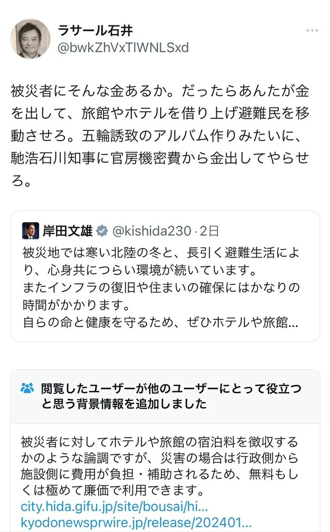 — ラサール石井 (@bwkZhVxTlWNLSxd) January 14, 2024