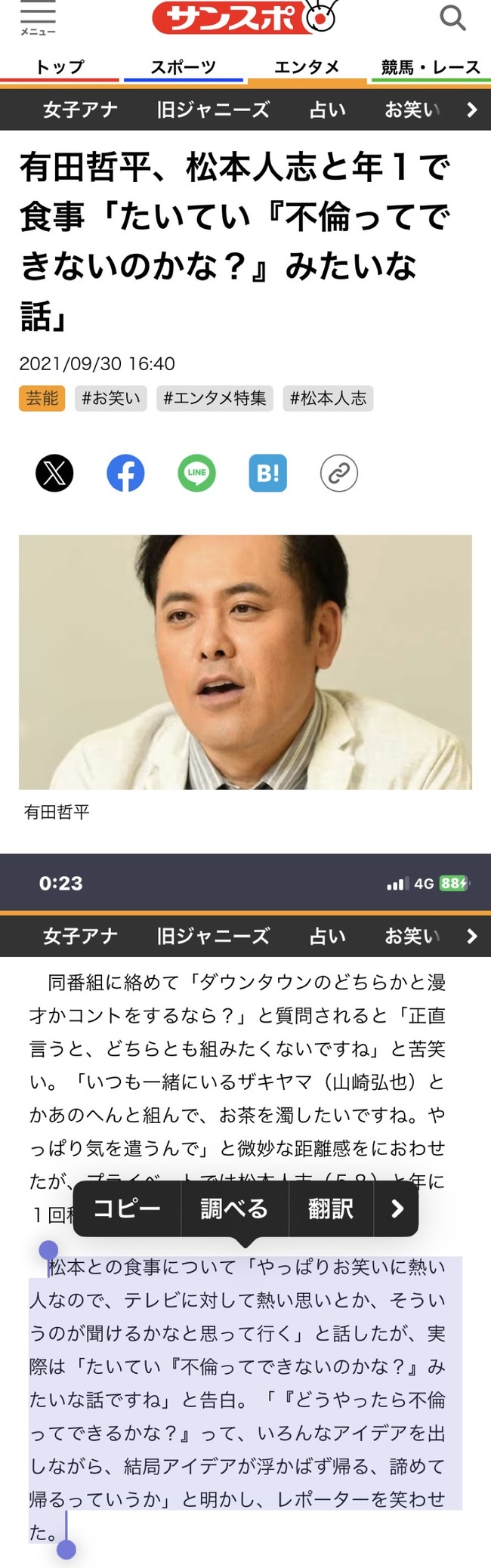 【あっ】3年前の記事にて、くりぃむしちゅー・有田さん「松本人志さんと食事しても不倫の話ばっか」肥猫2年前发布关注私信04913 サンスポより ★~☆·☆.~同舟*∴*~★ © 版权声明 版权声明 1 本网站名称:华人同舟360 3 本网站的文章部分内容可能来源于网络,仅供大家学习与参考,如有侵权,请联系站长QQ3311406980进行删除处理。 4 本站一切资源不代表本站立场,并不代表本站赞同其观点和对其真实性负责。 5 本站一律禁止以任何方式发布或转载任何违法的相关信息,访客发现请向站长举报 THE END在日趣闻 喜欢就支持一下吧点赞13 分享QQ空间微博QQ好友海报分享复制链接收藏