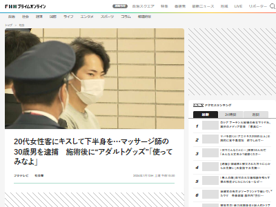 20代女性客にキスして下半身を…マッサージ師の30歳男を逮捕 施術後に“アダルトグッズ”「使ってみなよ」