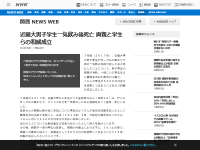7年前(2017年)、近畿大学の男子学生がサークルの集まりで酒の一気飲みを繰り返したあと死亡したことについて、男子学生の両親が当時、一緒にいた学生などに賠償を求めた裁判の2審で、16人の学生が5000万円余りを連帯して支払うことなどで和解が成立しました。