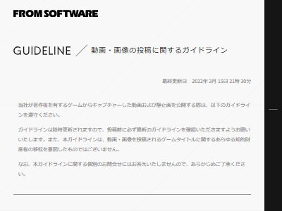 動画配信・画像投稿に関するガイドライン | FromSoftware – フロム・ソフトウェア