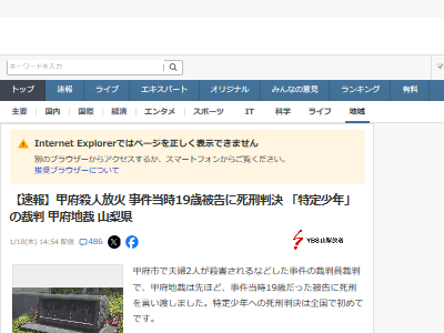 特定少年への死刑判決は全国で初めてとなる