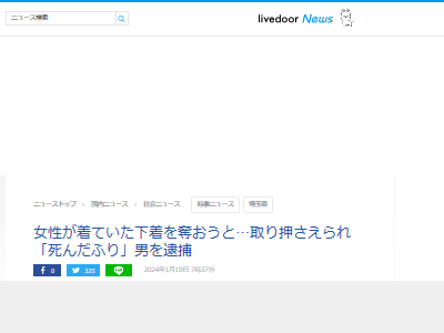 女性が着ていた下着を奪おうと…取り押さえられ「死んだふり」男を逮捕 (2024年1月19日掲載) – ライブドアニュース
