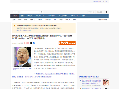 「活動休止発表以降、多くのスポンサーが松本の番組の提供の社名表示を停止する動きが出ています。同時に、すでにスピードワゴンの小沢一敬は、活動自粛を表明していますが、アテンダーとして名前のあがった芸人も今後、“スポンサーNG”となっていく流れは間違いないでしょう。」