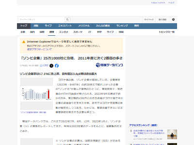 「ゾンビ企業」25万1000社に急増、 2011年度に次ぐ2番目の多さ