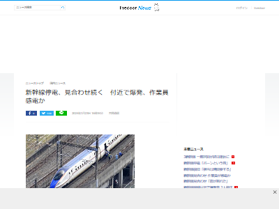 作業員が感電か、「火災」通報も 新幹線停止現場から2人搬送情報