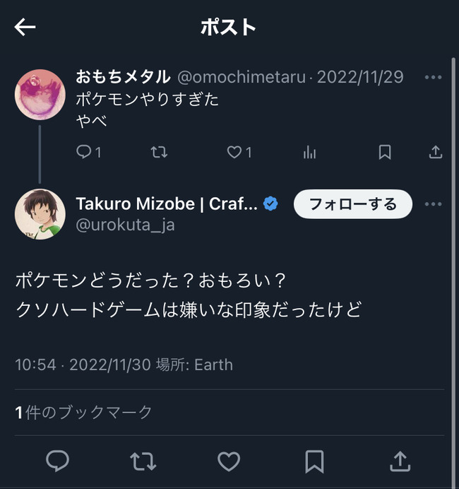 クソハードゲームは嫌いな印象だったけど— Takuro Mizobe | Craftopia, Palworld (@urokuta_ja) November 30, 2022