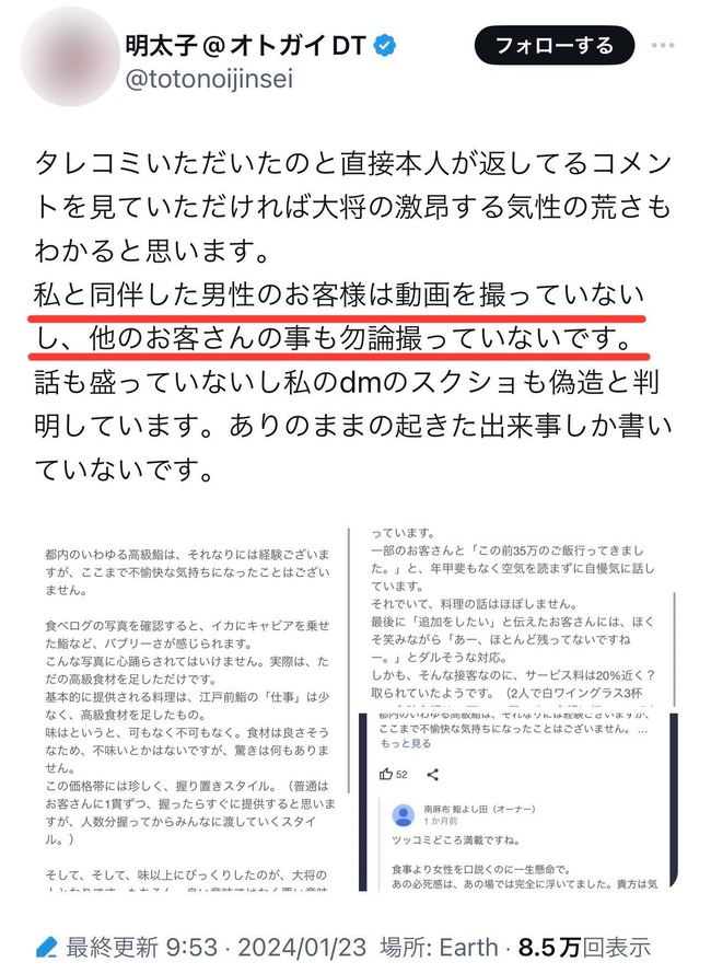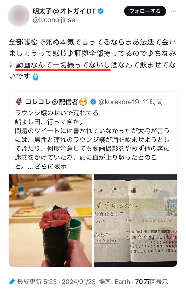【朗報】鮨よし田の件のラウンジ嬢、必死すぎるがあまり自爆してしまう pic.twitter.com/pSTwEABz1V