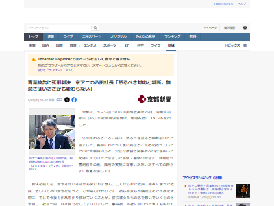京都アニメーションの八田英明社長は、青葉真司被告(45)の死刑判決を受け、報道各社にコメントを出した。