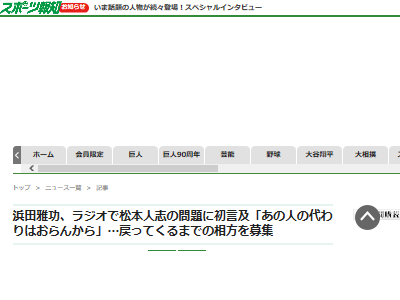 浜田雅功、ラジオで松本人志の問題に初言及「あの人の代わりはおらんから」…戻ってくるまでの相方を募集