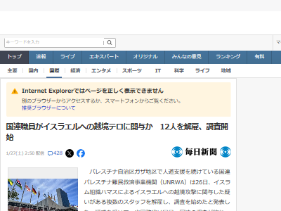 国連職員がイスラエルへの越境テロに関与か 12人を解雇、調査開始(毎日新聞) – Yahoo!ニュース
