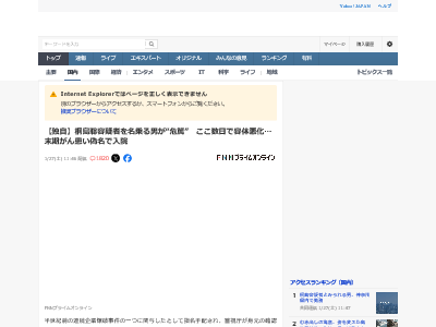 男は、25日は会話できる状況だったが、ここ数日で容体が悪化し、現在、危篤の状態にあるという。