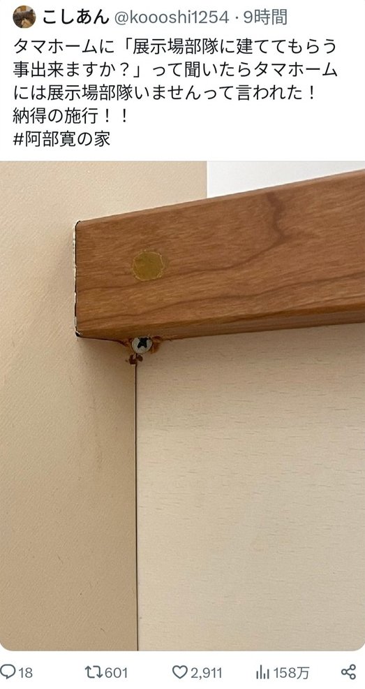 「展示場を確認したけど、このような釘はありませんでした」って言われたけど、嘘でこんなポストしないやろ#タマホーム https://t.co/smQoguQbHA— こしあん (@koooshi1254) January 27, 2024
