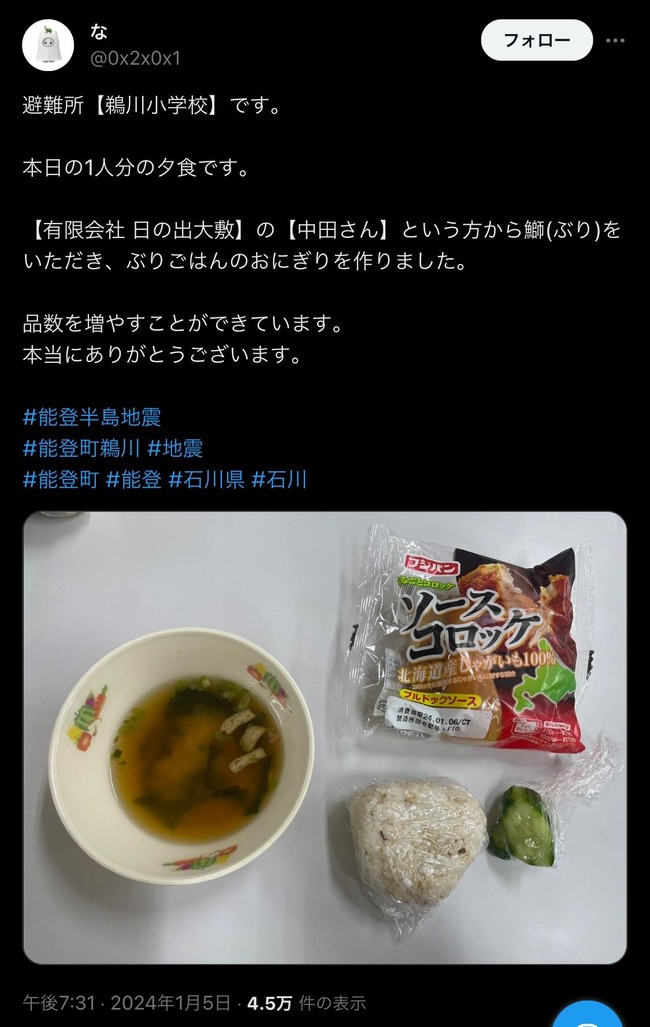 ![图片[1]-被災した能登から避難所メシを発信していた女子大生、「パパ活してる」など誹謗中傷を受けXをログアウト・・・流石に終わってるだろ-同舟](https://zb.amz114.top/wp-content/uploads/2024/01/frc-e34c9d82283a58808ed48e4d8110e7e3.jpg)