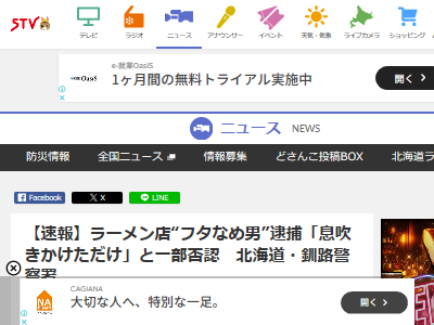 【速報】ラーメン店“フタなめ男”逮捕「息吹きかけただけ」と一部否認 北海道・釧路警察署 | 北海道 | ニュース | STV札幌テレビ
