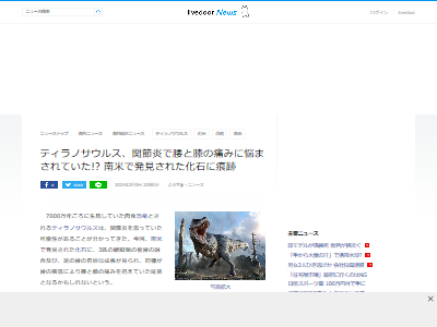 7000万年ごろに生息していた肉食恐竜とされるティラノサウルスは、関節炎を患っていた可能性があることが分かってきた。今回、南米で発見された化石に、3匹の獣脚類の椎骨の融合及び、足の骨の奇妙な成長が見られ、同種が骨の疾患により腰と膝の痛みを抱えていた証拠となるかもしれないという。