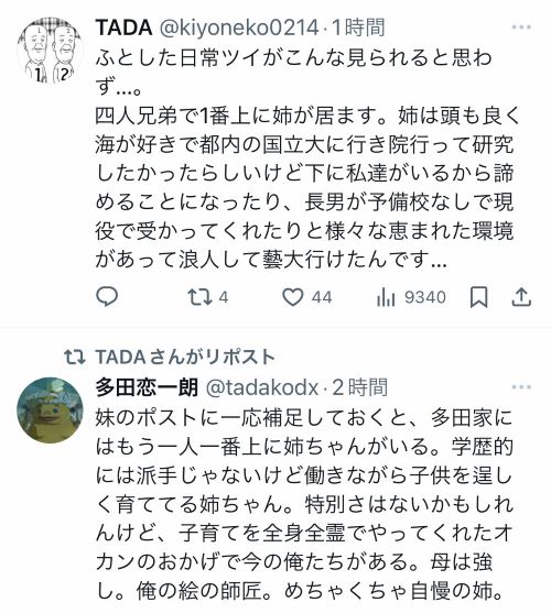 下の3人きょうだいのために自身の進学を諦めたお姉さんの自己犠牲と献身が「派手な学歴」を並べるために覆い隠されてるのグロすぎるな https://t.co/Zjs2BUUVjk