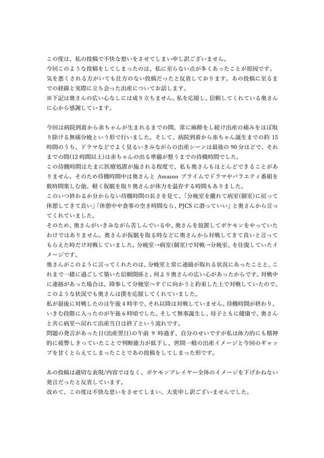 ↓本人が謝罪、なお奥さんはポケモン対戦を許していた模様
