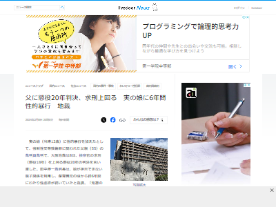 父に懲役20年判決、求刑上回る 実の娘に6年間性的暴行 地裁