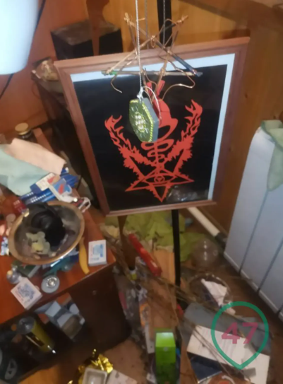 男性は4年前に亡くなったとみられ、遺体はベッドに寝かされていた。また、遺体の足元にはエジプト十字や動物の頭蓋骨の絵などがあり、妻が何らかの儀式を行っていたとみられる。 pic.twitter.com/XBP7oeb6DL