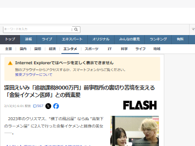 ・前事務所では、月給約200万円で年収は約2400万円だったが追徴当時、深田の貯蓄額は約2000万円。2023年4月に貯蓄が消え、現在は完納のための金策に奔走