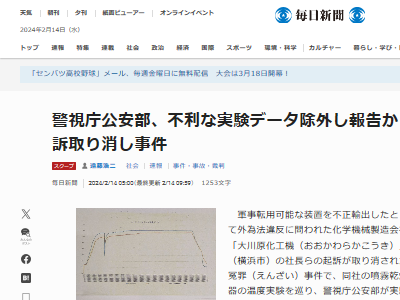 警視庁公安部、不利な実験データ除外し報告か 起訴取り消し事件 | 毎日新聞