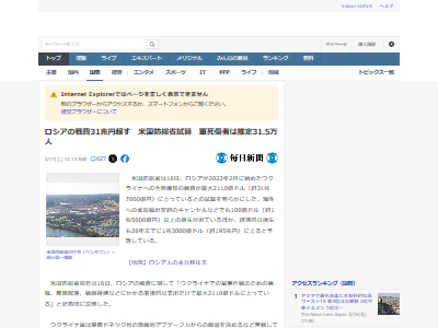 ロシアの戦費31兆円超す 米国防総省試算 軍死傷者は推定31.5万人