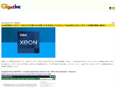 性能テストの標準化団体の1つで、公平なベンチマークを行うために設立された非営利組織・SPECが、「Intelが自社プロセッサのベンチマーク結果を水増しするために特定のベンチマークのスコアを向上させるような最適化を行い、スコアを最大で9%水増ししていた」として、Intelプロセッサのベンチマーク結果2600件以上を事実上無効化しました。
