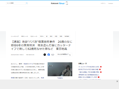 東京・池袋のホテルで82歳の男性から現金を盗んだ後、この男性を刺して死亡させた罪に問われている26歳の女に対し、東京地裁は懲役6年の実刑判決を言い渡しました。