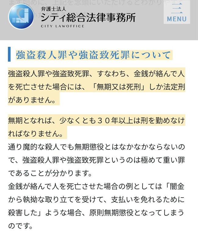これ実際のところどうなのだろうか?と思って調べてみたんですが、強盗致死の場合無期懲役か死刑ということになってますね。