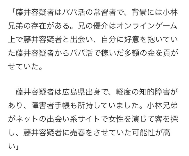知的障害のある被告に暴力を振るって売春させていた男たちは不起訴処分になってるし https://t.co/EcoMxfNiey— 元気サラダ (@ued723) February 20, 2024