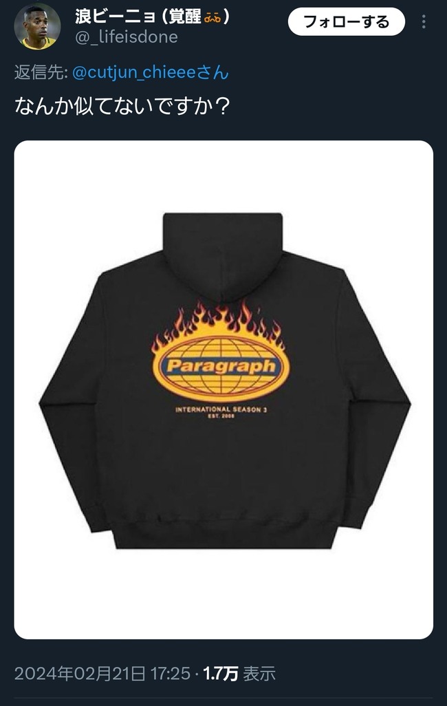 加藤純一さんのeスポチーム『ムラッシュゲーミング』のパーカー、パクリ疑惑が上がってしまう・・・肥猫1年前发布关注私信05111 Xより ↓↓↓ 後ろも完全にTHRASHER ★~☆·☆.~同舟*∴*~★ © 版权声明 版权声明 1 本网站名称:华人同舟360 3 本网站的文章部分内容可能来源于网络,仅供大家学习与参考,如有侵权,请联系站长QQ3311406980进行删除处理。 4 本站一切资源不代表本站立场,并不代表本站赞同其观点和对其真实性负责。 5 本站一律禁止以任何方式发布或转载任何违法的相关信息,访客发现请向站长举报 THE END在日趣闻 喜欢就支持一下吧点赞11 分享QQ空间微博QQ好友海报分享复制链接收藏