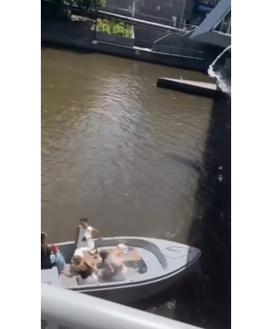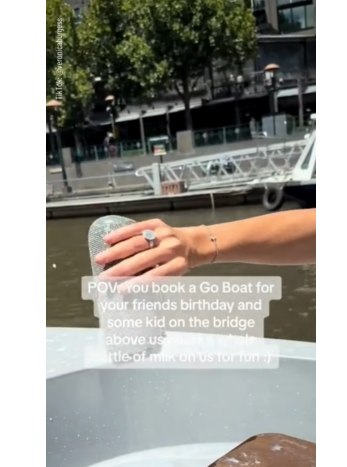 少年は、ボートで友人の誕生日を祝っていた人々に向けて橋の上から牛乳をかける様子を撮影して、SNSに投稿していた。