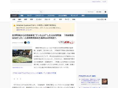 新井氏は町議会で性被害を訴えたが、その発言が「議会の品位を傷つける」として除名処分を受けた。