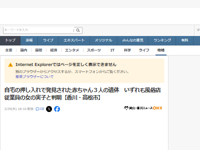 自宅の押し入れで発見された赤ちゃん3人の遺体 いずれも風俗店従業員の女の実子と判明【香川・高松市】(OHK岡山放送) – Yahoo!ニュース