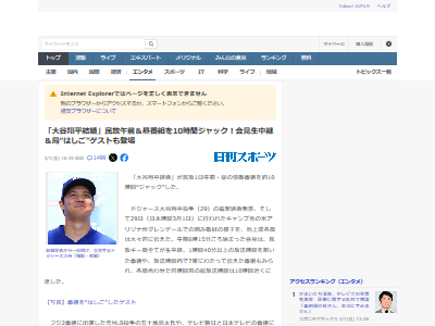 ドジャース大谷翔平投手(29)の電撃結婚発表、キャンプ地の米アリゾナ州グレンデールでの囲み取材の様子を地上波各局は大々的に伝えた。